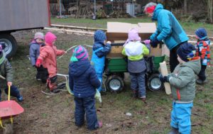 Alle vier Mitarbeitenden des Natur- & Bauernhofkindergartens auf dem Pabst-Hof fanden sich Punkt 8.00 Uhr beim Bauwagen ein. „Was ist denn heute los?“ wollten die ersten Kinder gleich bei ihrer Ankunft wissen.