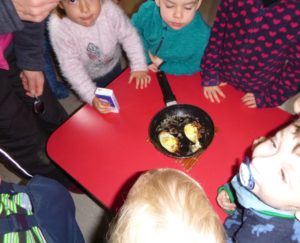 „Ist da ein Küken drin?“, „Gibt es morgen wieder ein Ei, oder mehr?“, „Kann man das Ei essen?“ usw.