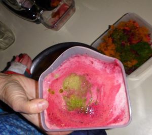 Je nach dem welches Obst oder Gemüse gerade durchlief, veränderte sich die Farbe des Saftes: