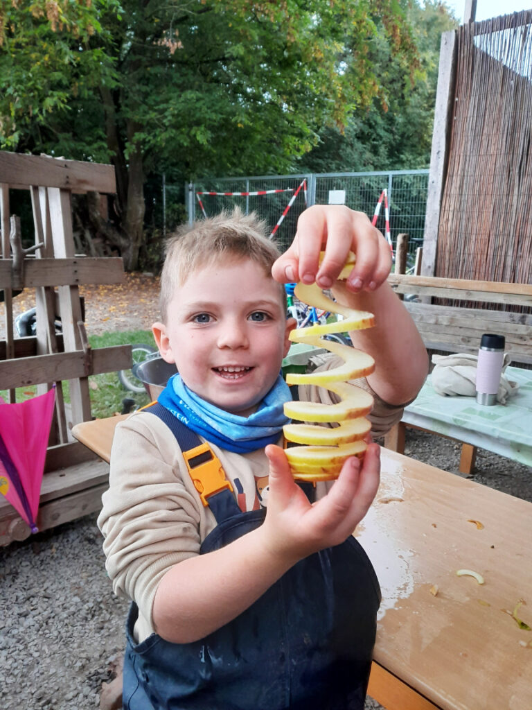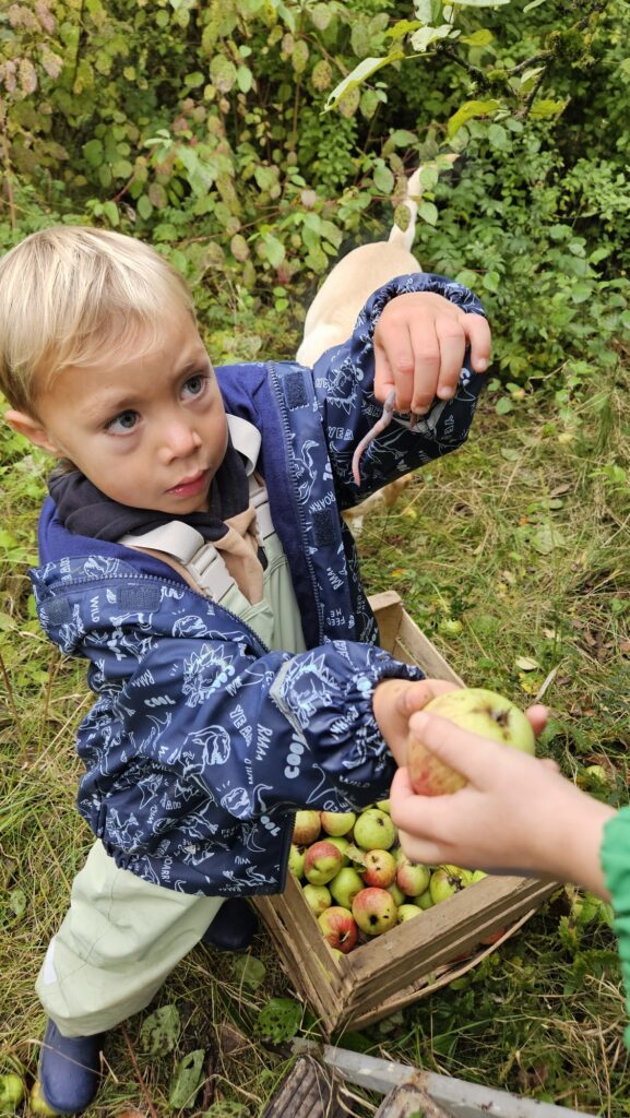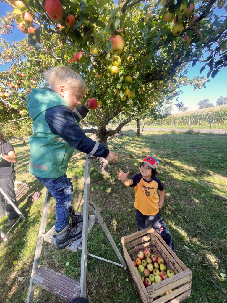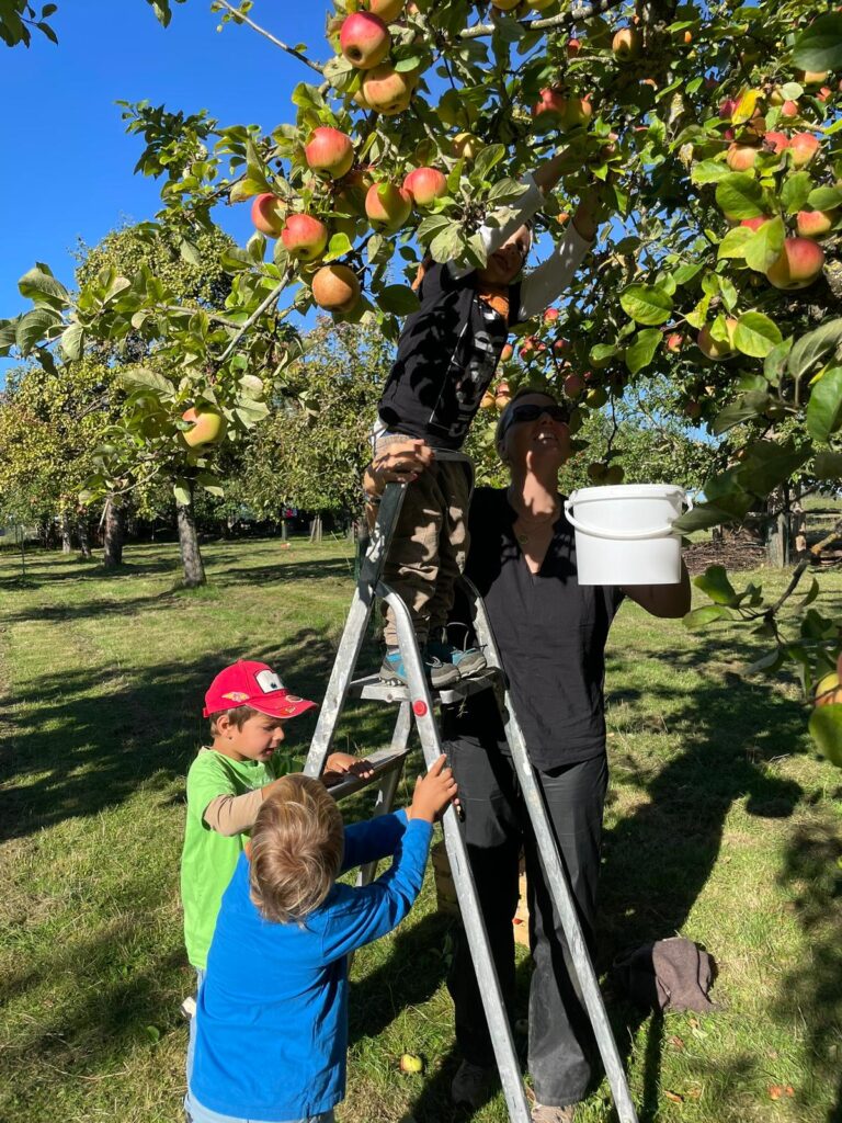Gemeinsam mit unseren 18 Kindern haben wir die reifen, saftigen Äpfel von den Bäumen gepflückt und dabei Erstaunliches festgestellt. Manche Äpfel schmecken sauer und eignen sich gut zum Einkochen